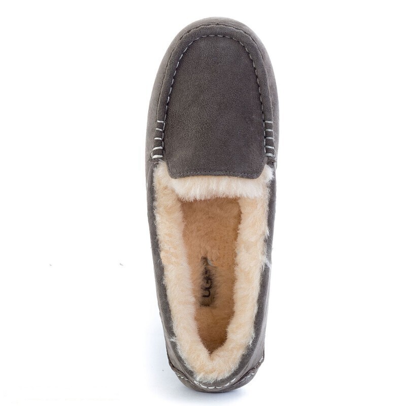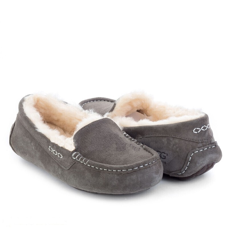 UGG Ansley Grey — это женские мокасины, которые сочетают в себе классический силуэт, премиальные материалы и универсальность. Выполненные из натуральной замши в утончённом сером оттенке, они идеально подходят как для дома, так и для прогулок. Внутри — плотная овчина UGGplush™ толщиной 17 мм, созданная из переработанной шерсти и лиоцелла, которая сохраняет тепло и дарит ощущение абсолютного уюта.