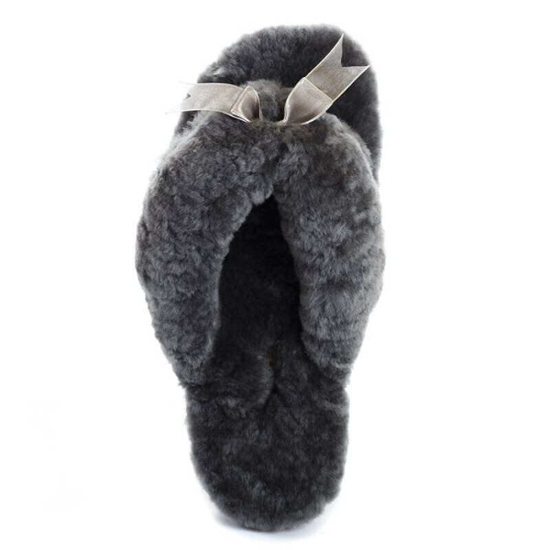 UGG Fluff Flip Flop II Grey — это женские тапочки-шлёпки с открытым мысом, выполненные из натурального овечьего меха в универсальном сером оттенке. Модель сочетает комфорт домашней обуви с лёгкостью повседневной носки. Мягкая текстильная перемычка между пальцами не натирает, а пушистый верх украшен декоративной лентой и бантом.