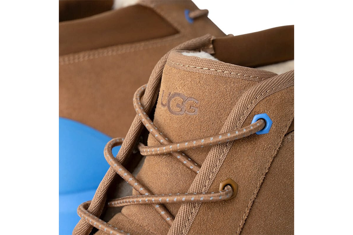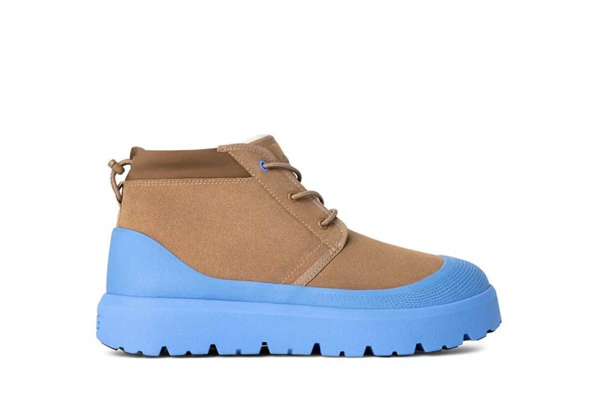 Удобные и стильные мужские ботинки UGG Neumel Weather Hybrid в цвете каштана с яркими небесными вставками - идеальный выбор для тех, кто ценит комфорт и модный дизайн.