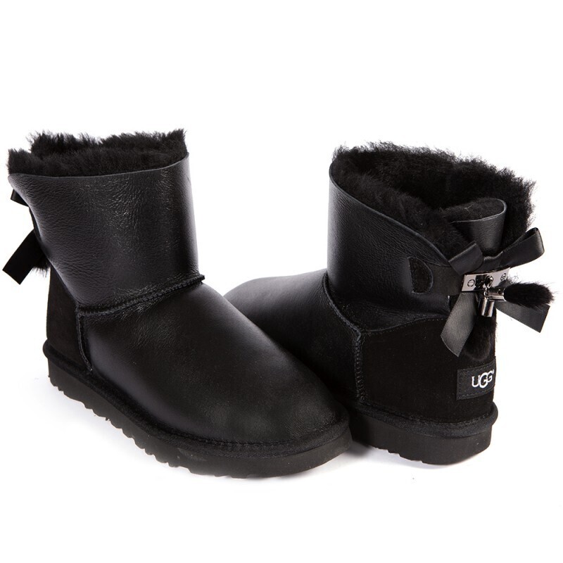 Угги Mini Bailey Bow Fur Brush Metallic Boot Black